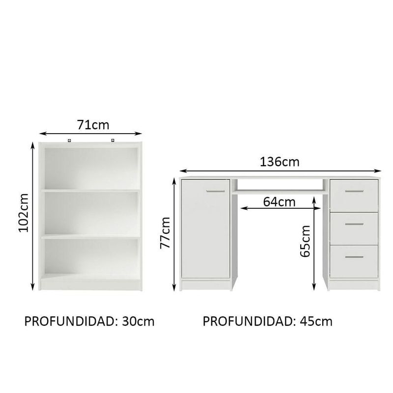 Escritorio Madesa Alaska y Librero Organizador 6907 Branco