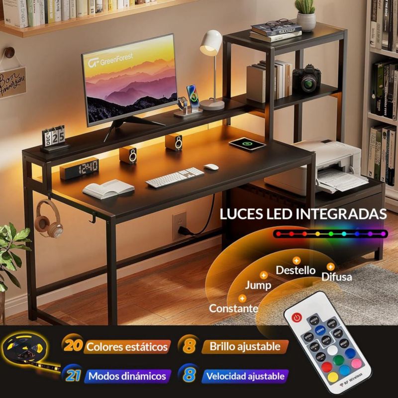 Escritorio Organizador con Estantería Lateral, Cajón y Base Metálica Negra – Bossa Zeni