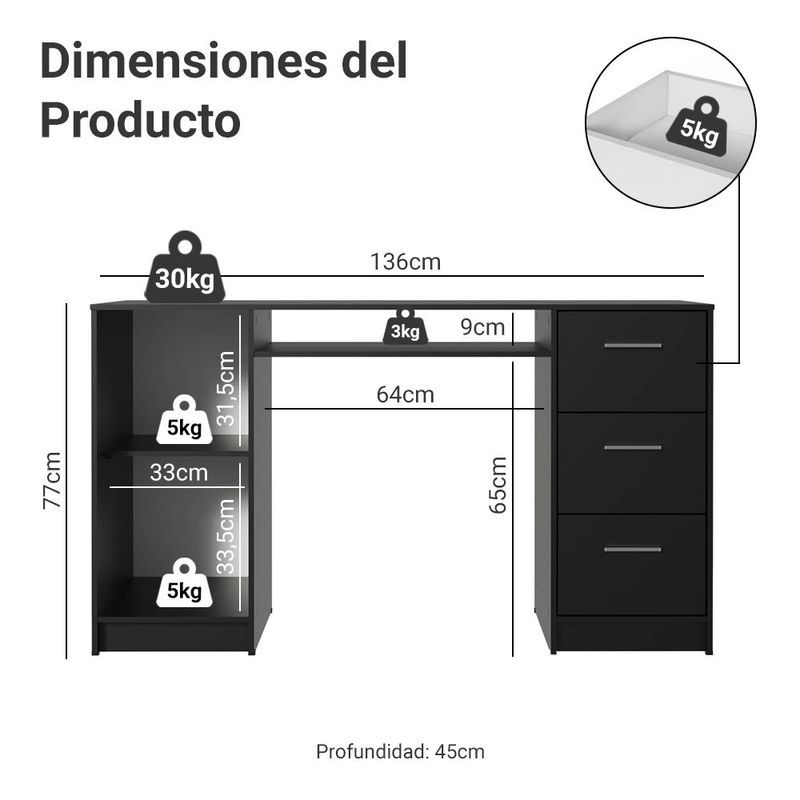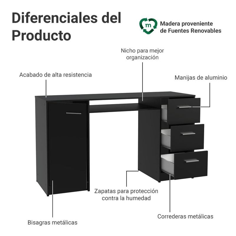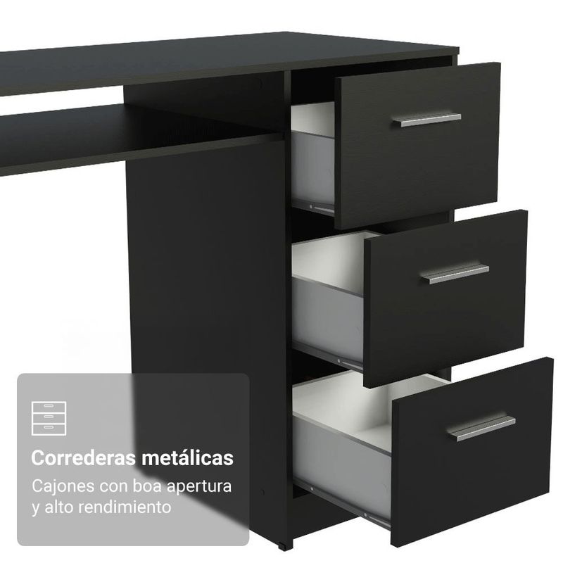 MueblesOficinaEscritoriosEscritorio Para Pc Madesa Alaska 3 Cajones 1 Puerta Negro 1