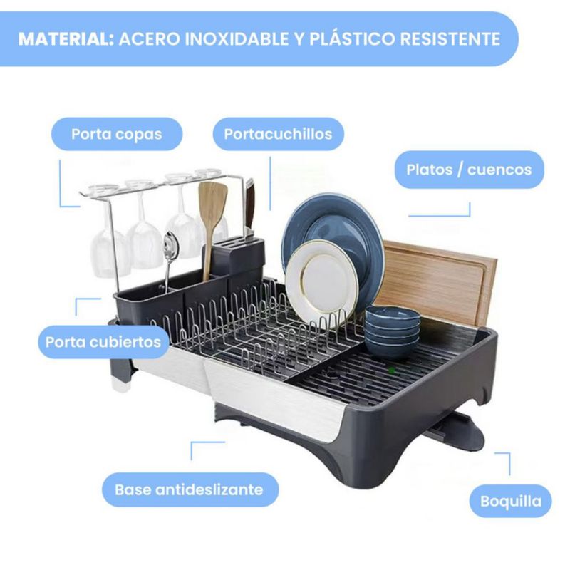 Escurridor De Trastes expandible y modulable de fácil armado, Escurridor de platos con Drenaje Automático, soporte de copas cubiertos y tabla de picar