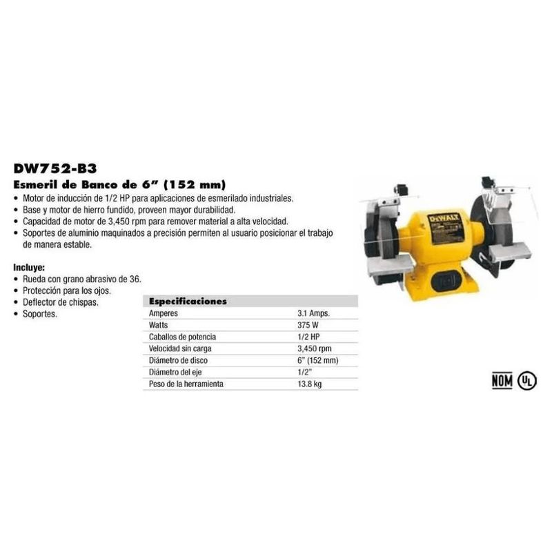 HerramientasEléctricasEsmeriladorasESMERIL DE BANCO 6 PULG 1/2 HP DW752 DEWALT