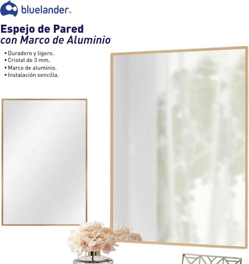 Espejo de pared Bluelander con marco de aluminio 50*70 cm.
