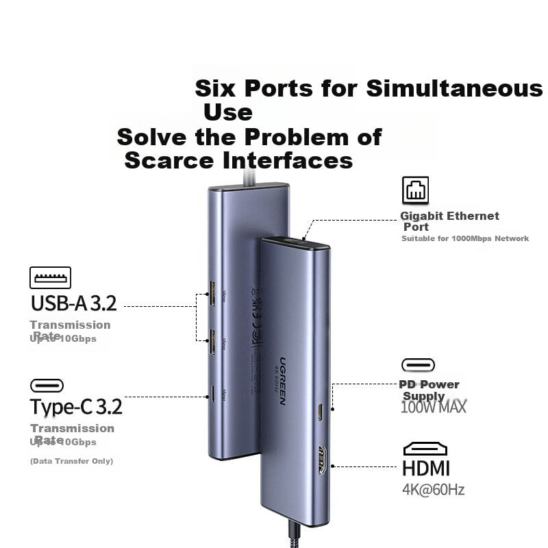 Estación De Acoplamiento Usb-C 3.2 Ugreen Con Hdmi 4K Y Ethernet Gigabit