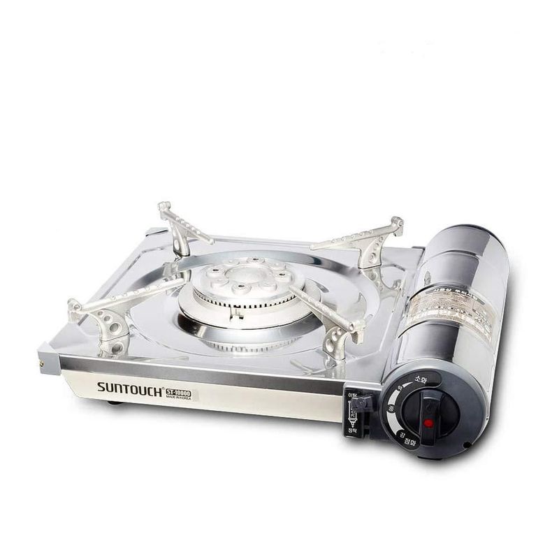 Línea blancaElectrodomésticosEspecializadosEstufa de camping portátil SUNTOUCH: quemador de gas butano, apagado automático de seguridad, acero inoxidable, incluye estuche