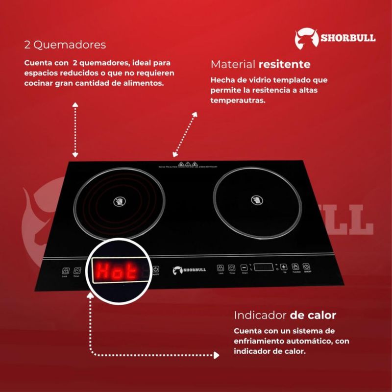 Estufa Eléctrica 2 Quemadores Shorbull Vidrio Templado