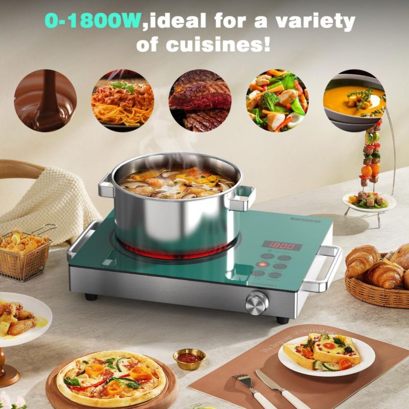 Estufa eléctrica portátil Karinear de 110 V y 1800 W con placa calefactora y asa, control remoto, quemador individual, quemador