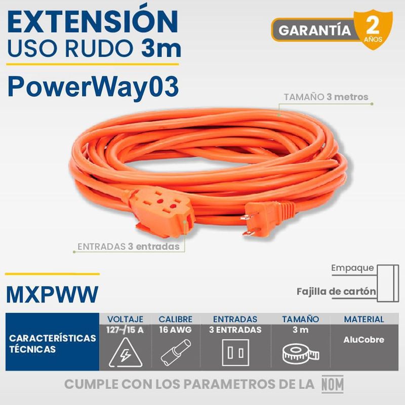 HerramientasMaterial EléctricoExtensiones y MulticontactosExtensión de Enchufe MXPWW-004 PowerWay03 Cable Extensión Uso Rudo