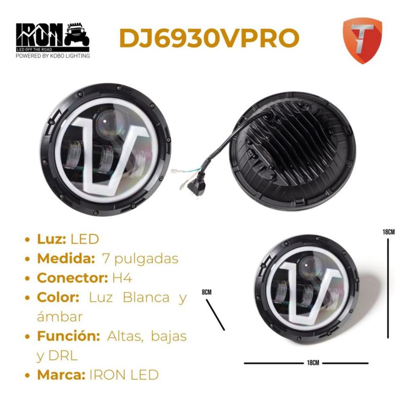 Faro LED 7 Pulgadas IRON LED H4 Luz Blanca Alta Baja DRL Ámbar 12V Ideal para Jeep, 4x4, Wrangler, Moto, Vocho