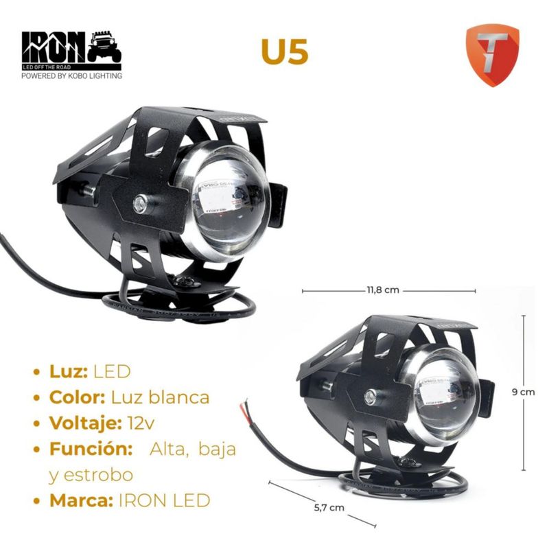 Faro LED Moto U5 IRON LED 12V 10W Luz Blanca Alta Baja y Estrobo Luz Auxiliar Exploradora Para Motocicleta Universal