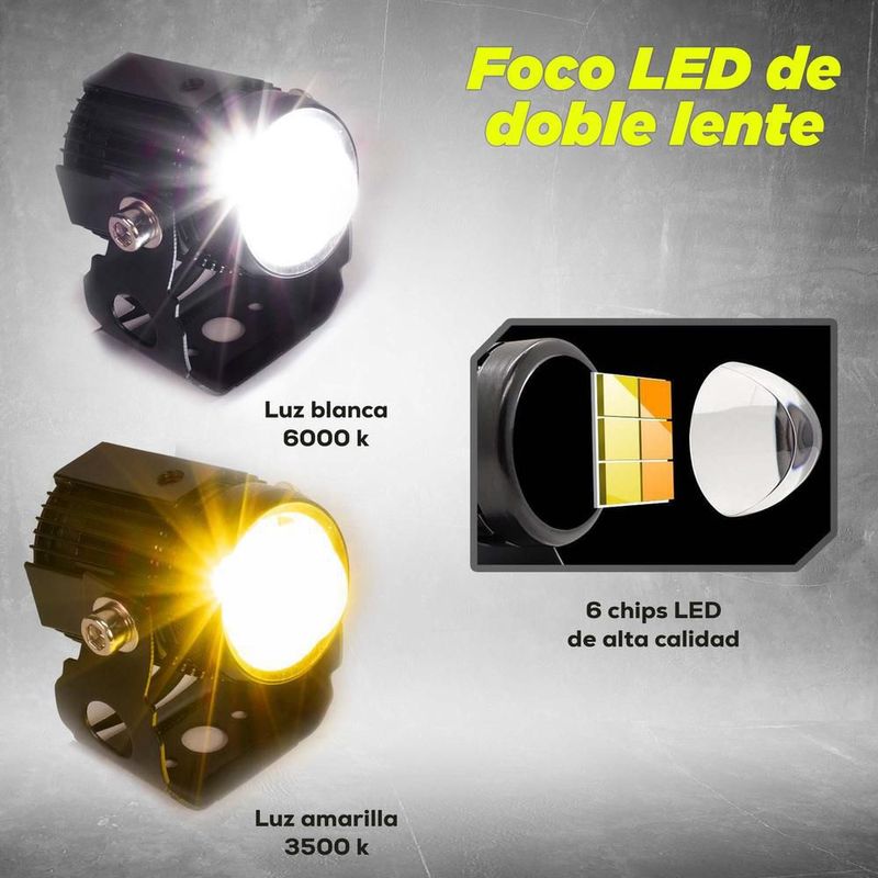 Faros auxiliares para motocicleta laser con base luz blanca y amarilla kinlley