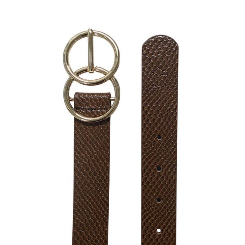 Ferrioni Cinturon Dama de Piel Genuina Delia Color Miel Hebilla Doble Dorada