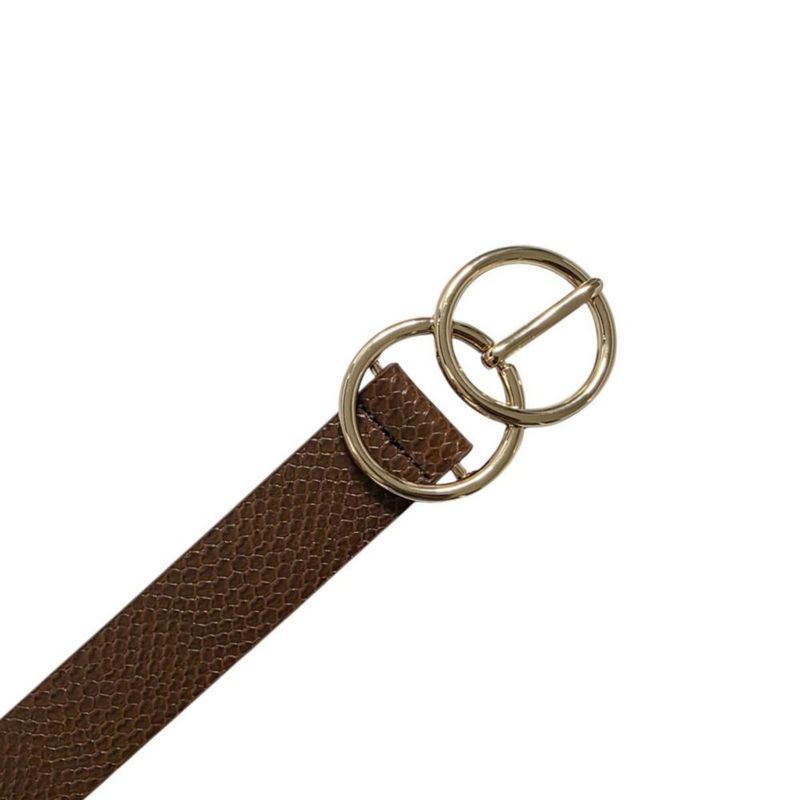Ferrioni Cinturon Dama de Piel Genuina Delia Color Miel Hebilla Doble Dorada