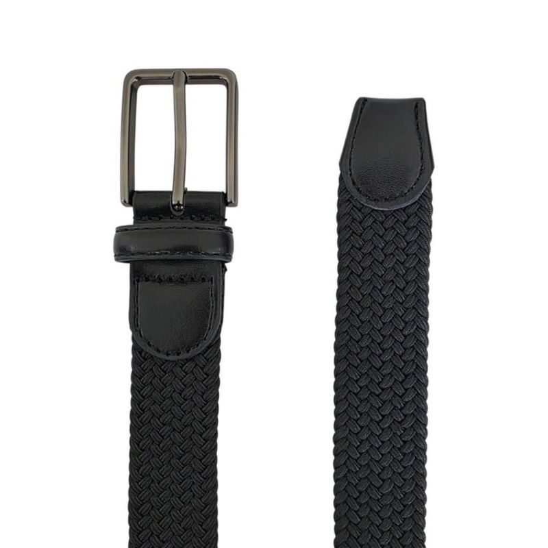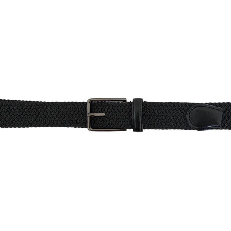 Ferrioni Cinturón Textil para Niño Elástico Trenzado Negro con Piel 29 mm
