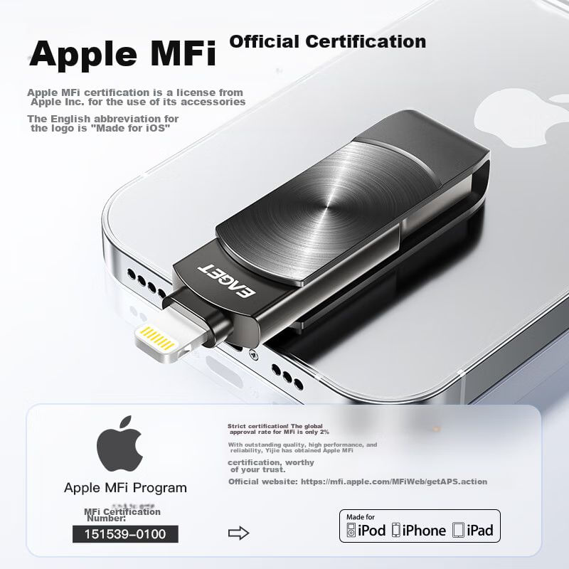 CómputoAlmacenamientoMemorias USBFlash EAGET i66 256GB Lightning USB3.0