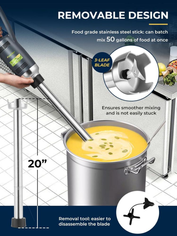 Flyseago Licuadora de inmersión comercial de mano mezcladora de velocidad variable de alta resistencia, 4000-16000 rpm con eje e