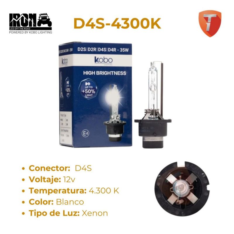 Foco Faro Hid Xenon KOBO Lighting D4S 4300K 35W 12V Plug & Play Luz Blanca Mismo Tono de Agencia