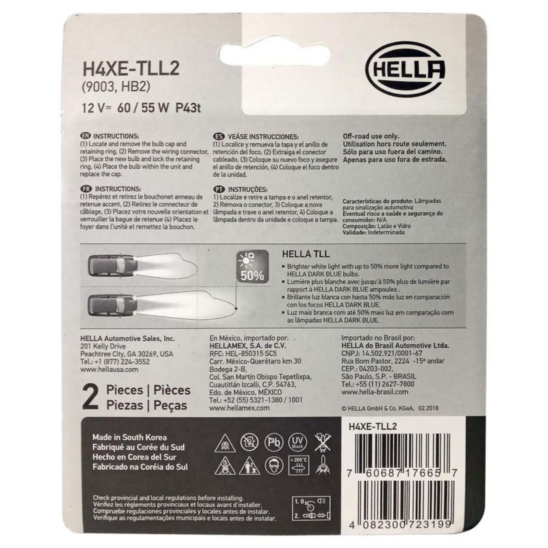 Foco H4 Tipo Xenón Premium 12V 60/55W 4000K Elvin +50% Luz 3 Patas Juego Hella
