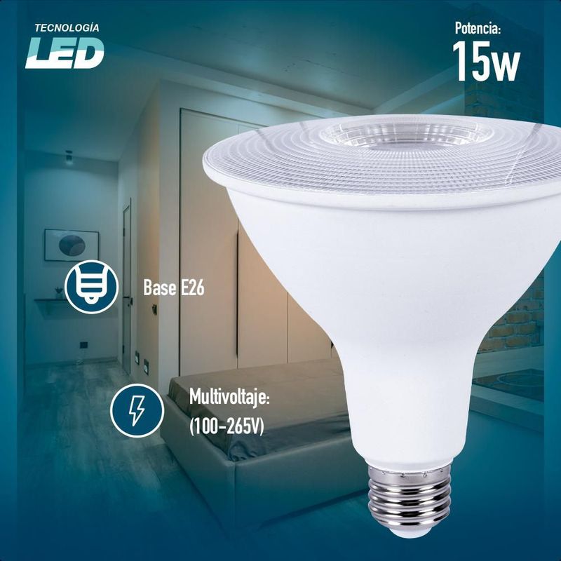 Foco LED ICON PAR38 15W Luz Cálida 3000K Long Neck Base E26 Pack 20 Piezas PAR3815W30KMVLN