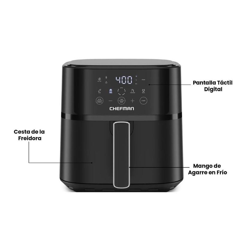 Línea blancaElectrodomésticosFreidoras de AireFreidora de Aire Digital Chefman 5.7L Negra