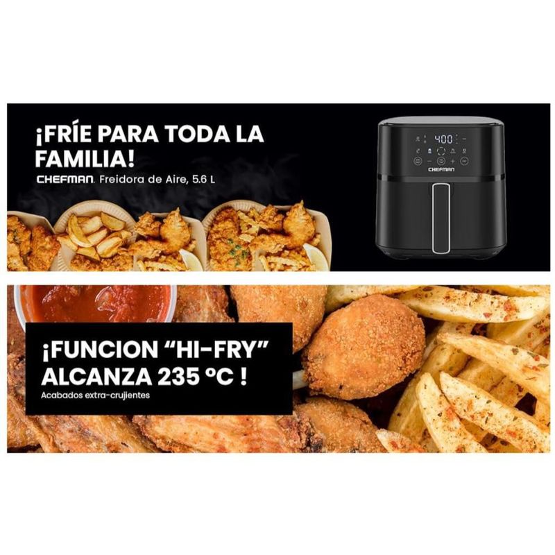 Línea blancaElectrodomésticosFreidoras de AireFreidora de Aire Digital Chefman 5.7L Negra