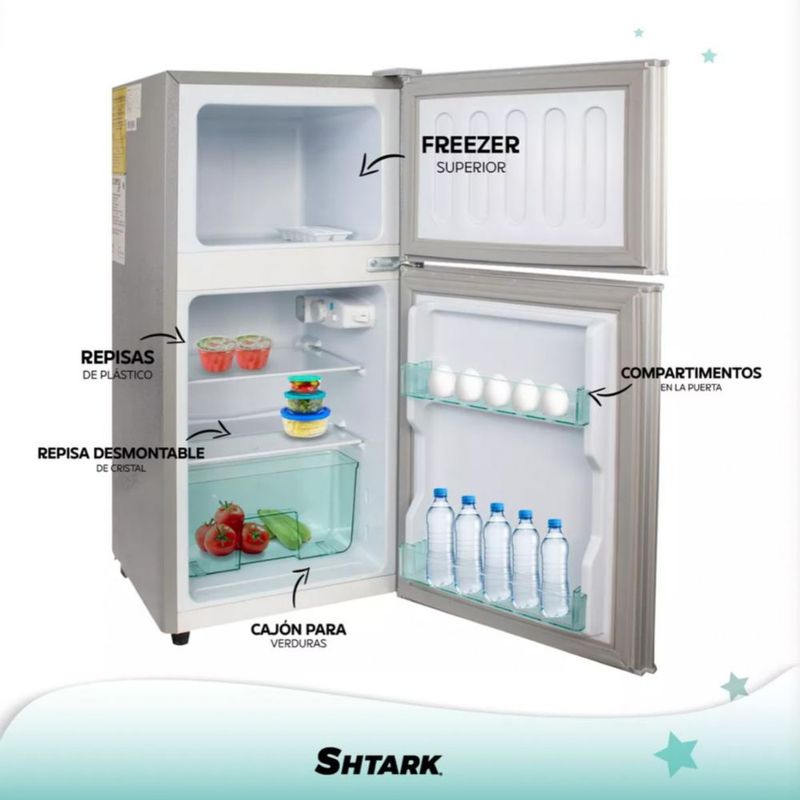 Línea blancaRefrigeradores y congeladoresFrigobaresFrigobar Refrigerador Con Freezer Cuory 86l 2 Puertas 3 Pies Color Plata