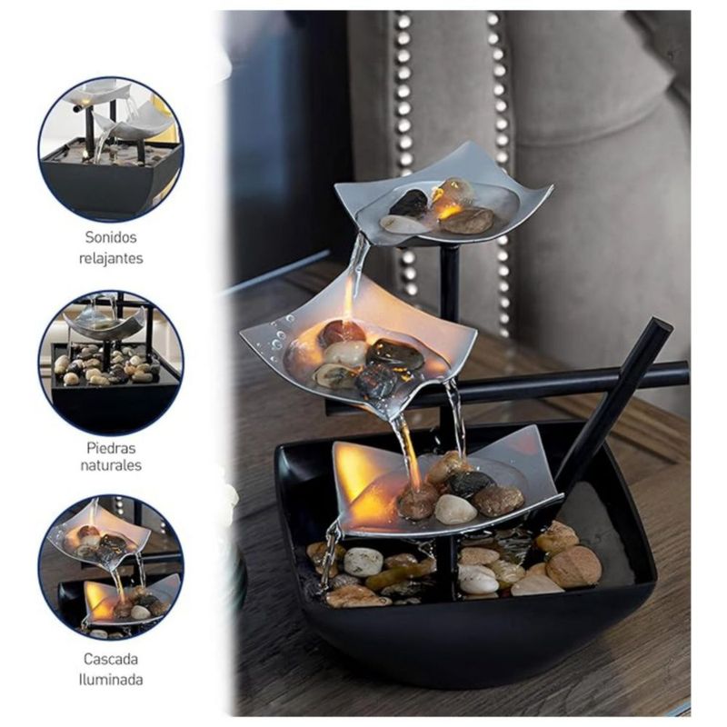 Fuente con Cascada Iluminada LED de Piedras Naturales. Bluelander