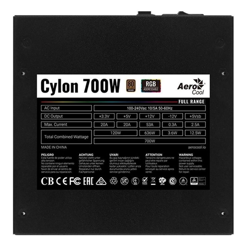 Fuente de poder gamer aerocool cylon rgb 700w 80 plus bronze
