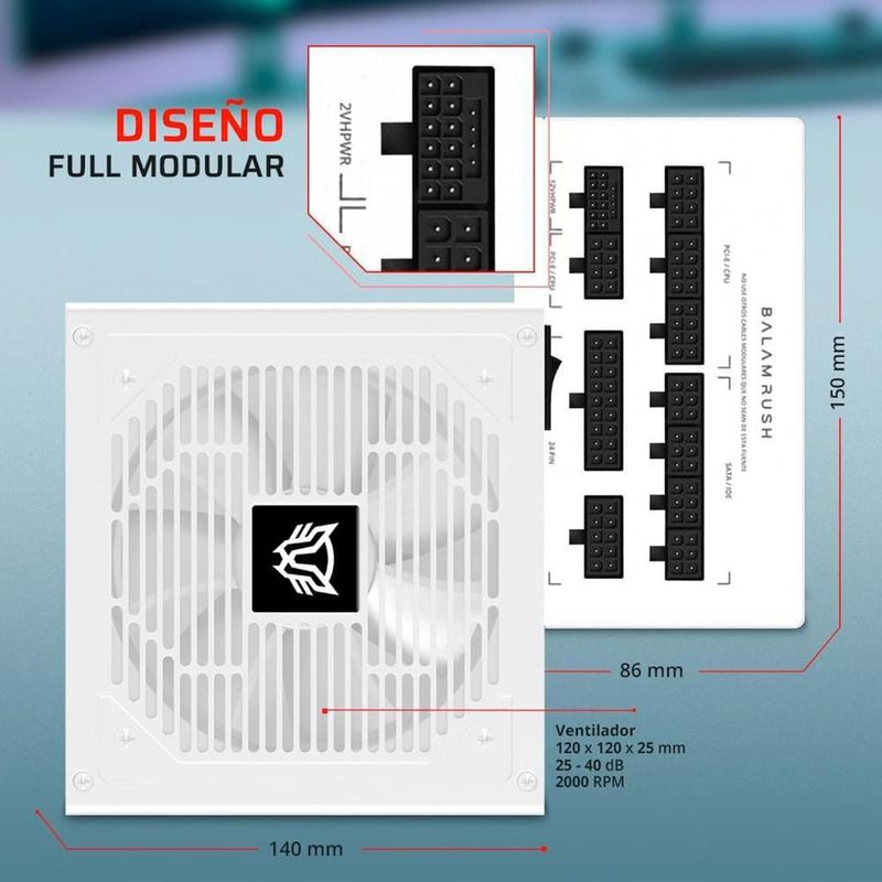 Fuente de poder pc 850w gamer balam rush gr burst gr850g 80 plus gold modular bl