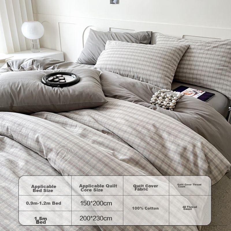 Funda de Edredón de cuadros 100% algodón 200x230cm Gris