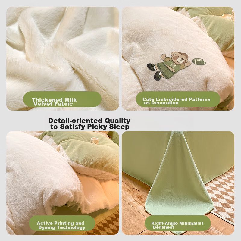 Funda de EdredónTerciopelo 200x230cm Beige/Verde