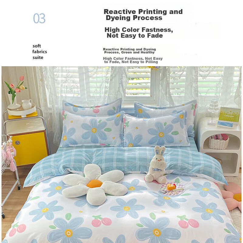 HogarBlancosEdredonesFunda Edredón floral 200x230cm 100% algodón Azul 1pza