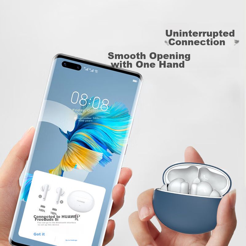 ElectrónicaAudio y equipos de sonidoAudífonosFunda ESCASE para Huawei Freebuds5i/6i silicona azul resistente a golpes con mosquetón