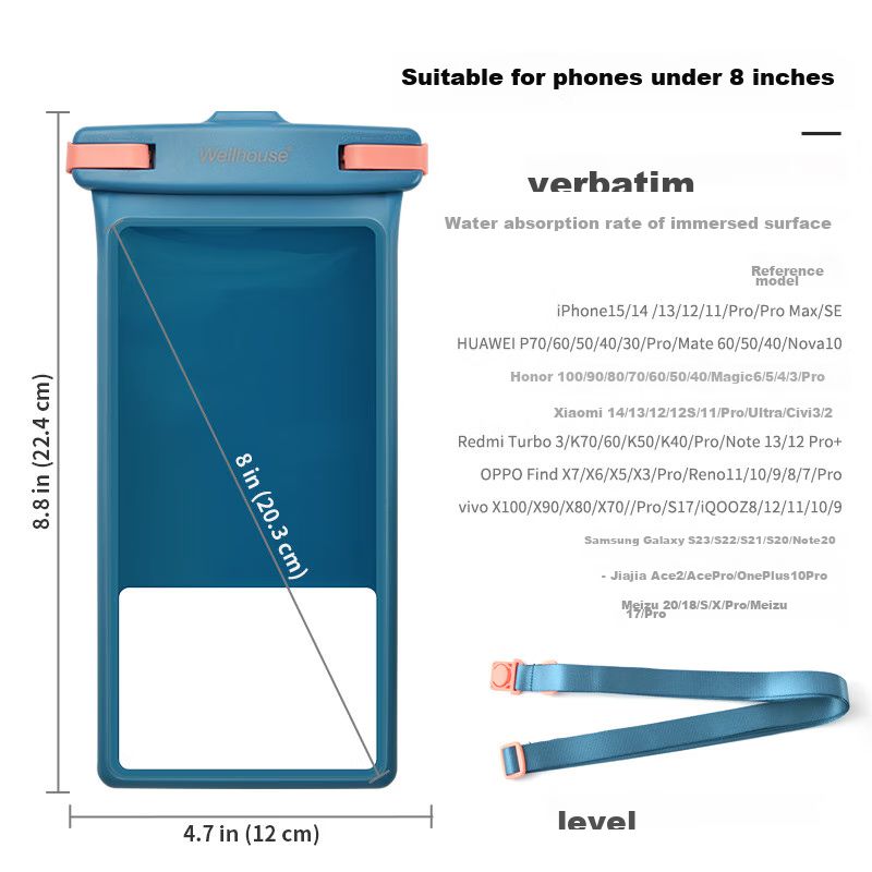 Funda impermeable WELLHOUSE para teléfono TPU Azul Diamante