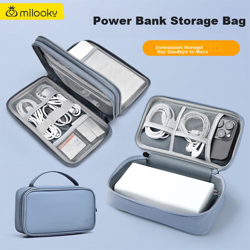Funda para banco de energía Milooky de tela resistente Negra/Azul unisex
