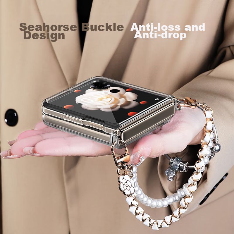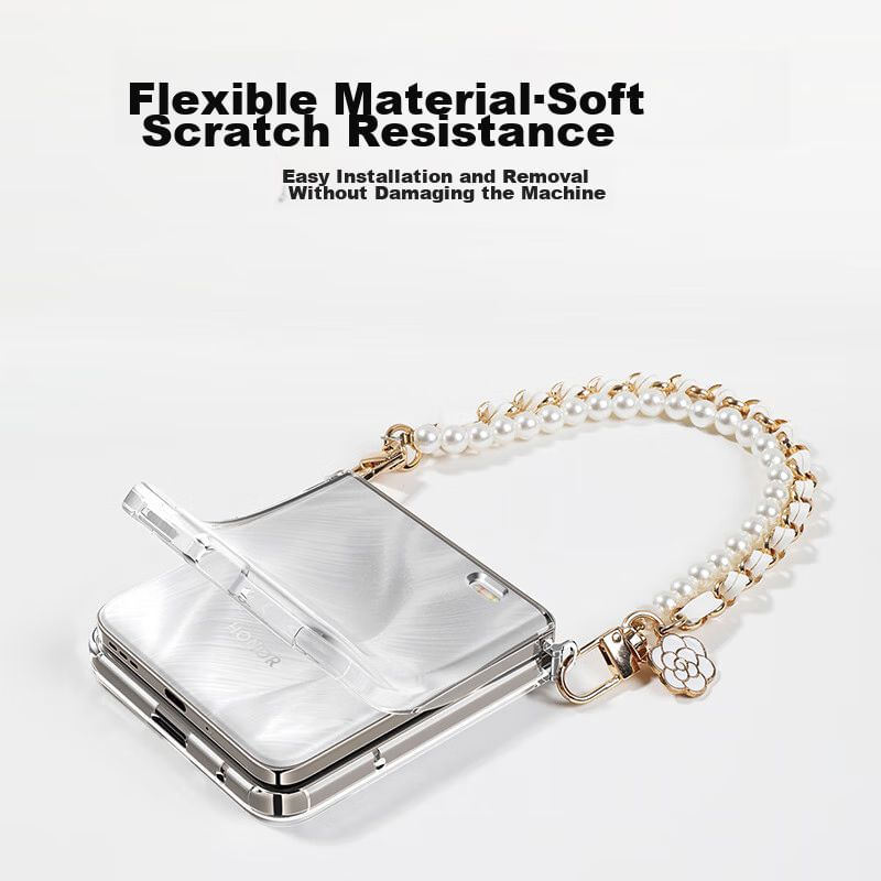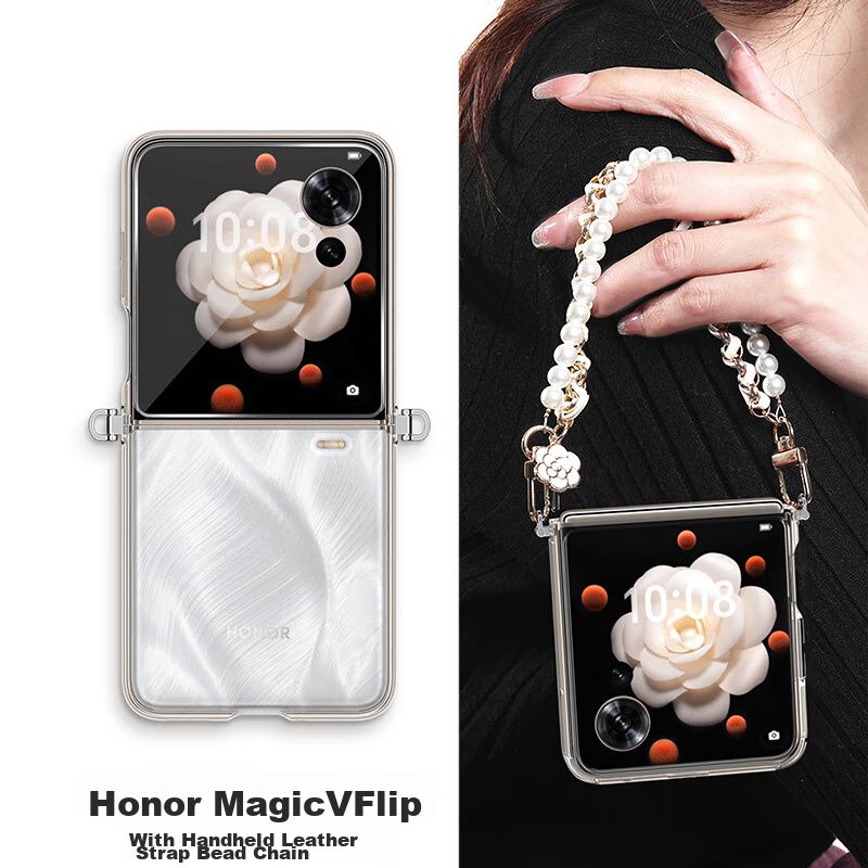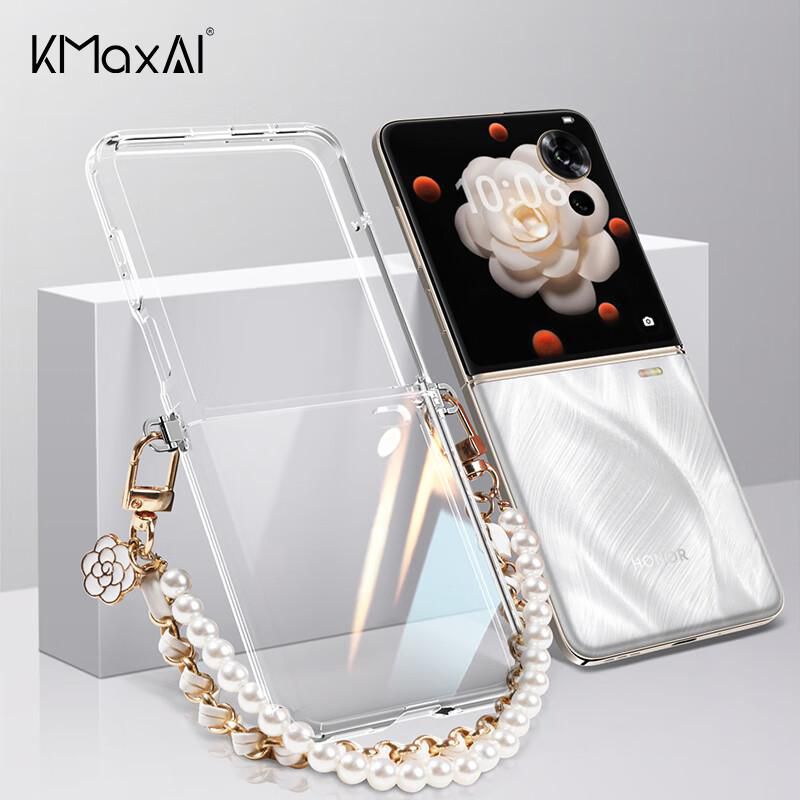 Funda Para HONOR Magic V Flip Kmaxai Plástico Transparente Con Correa De Cuero