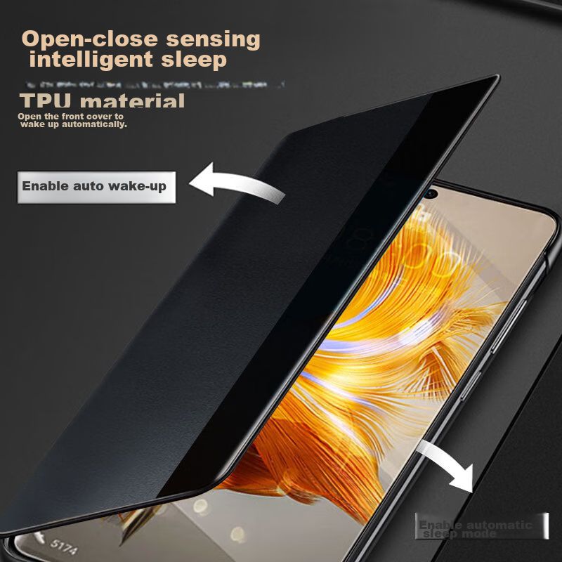 Funda Para Huawei Mate 50 Koolife Cuero Negro Flip Con Ventana Inteligente