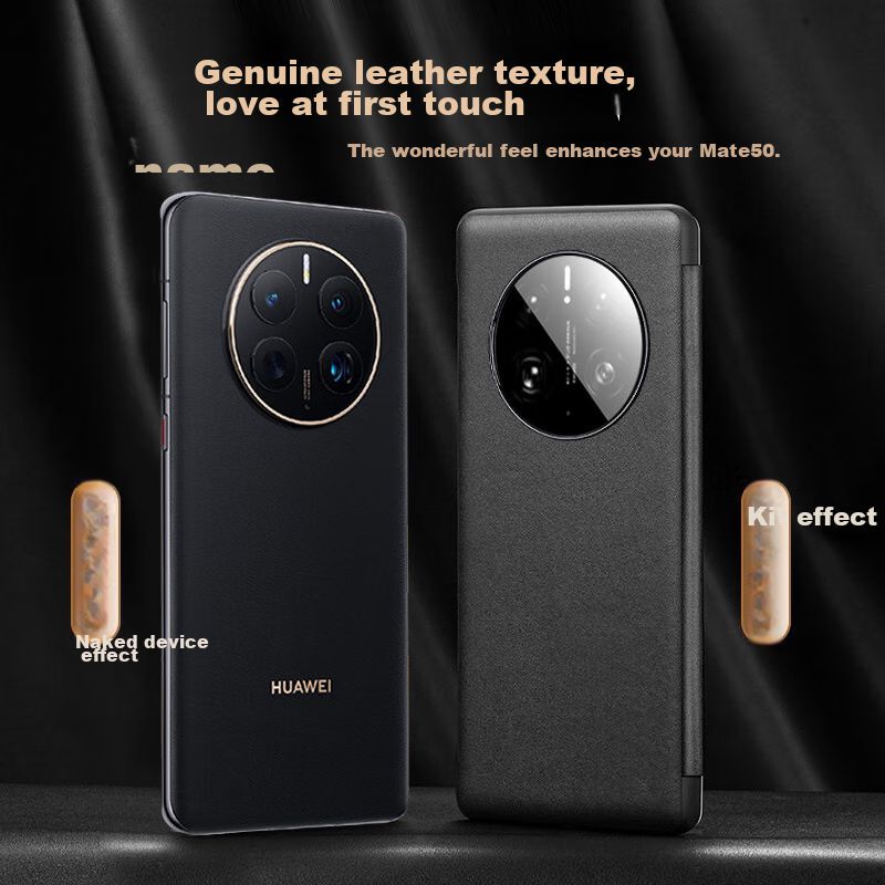 TelefoníaAccesorios para celularesFundas para CelularFunda Para Huawei Mate 50 Koolife Cuero Negro Flip Con Ventana Inteligente