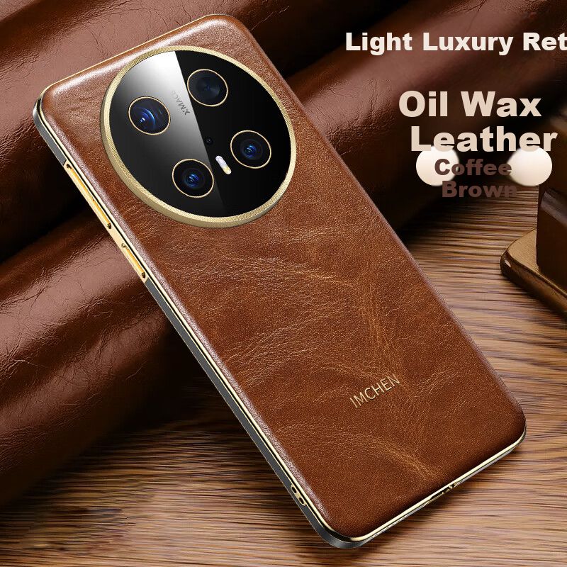 Funda Para Huawei Mate 70 Pro Im-Chen Cuero Genuino Café