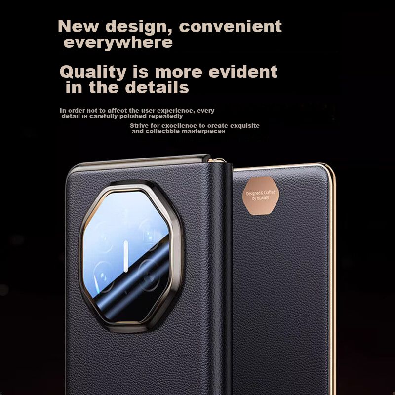 Funda Para Huawei Mate X Zhengjian Cuero Genuino Flip Negra
