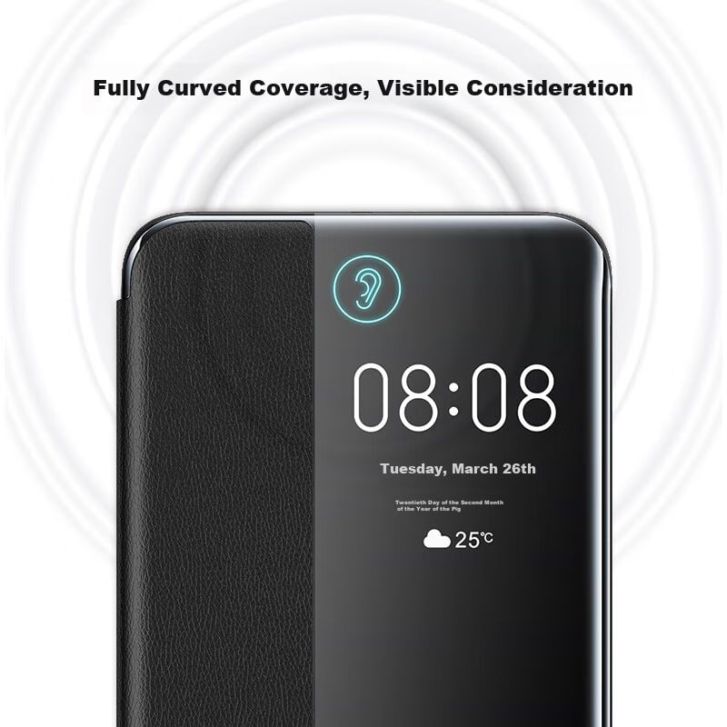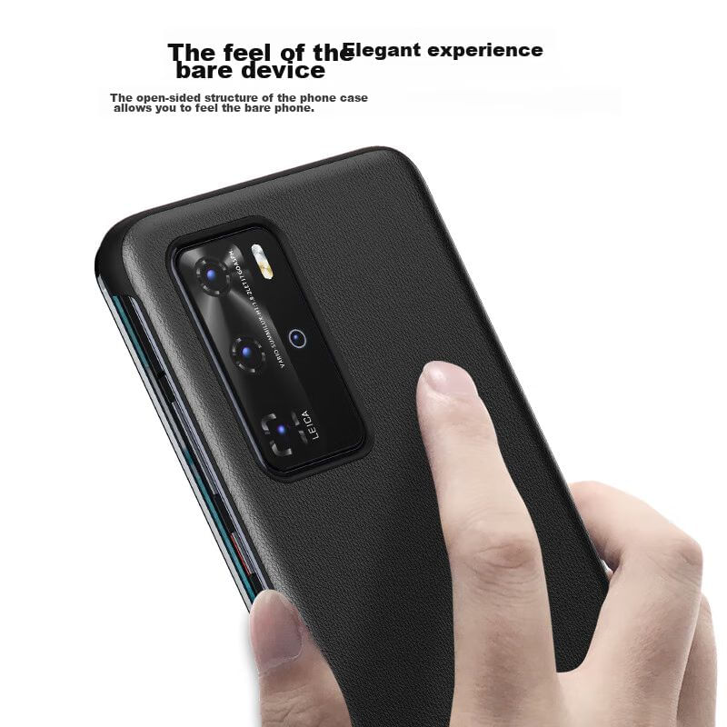 Funda Para HUAWEI P40 Pro+ Zhengjian Cuero Negro Con Ventana Inteligente