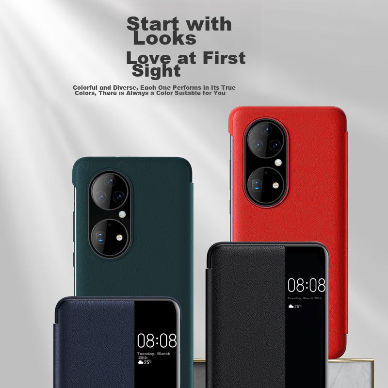 Funda Para Huawei P50 Pro Zhengjian Cuero Genuino Azul Ventana Smart View