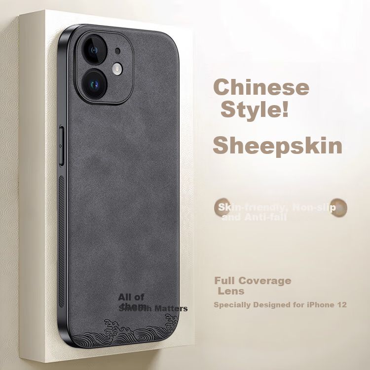 Funda Para Iphone 12 Shiyong Piel De Cordero Negro