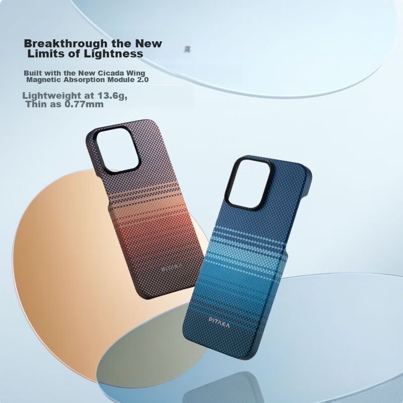 TelefoníaAccesorios para celularesFundas para CelularFunda Para IPHONE 15 Pro Max Pitaka Magezcase5 Kevlar Magsafe Ultra Fina Sunset Moonrise