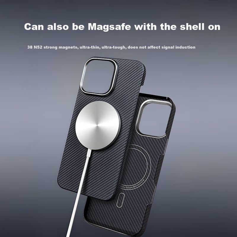 Funda Para Iphone 16 Pro Max Jingxuan Fibra De Aramida 600D Negra Gris Magsafe