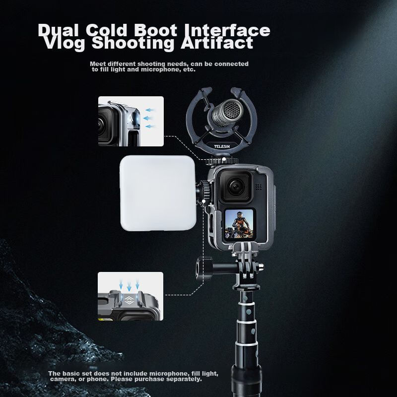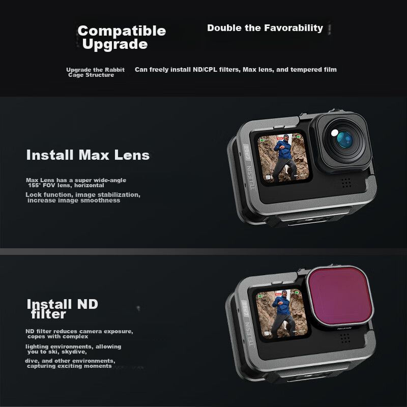 ElectrónicaCámarasDeportivasFunda Telesin Jaula Combo Metal Para Gopro 12/11/10/9 Gris Pizarra