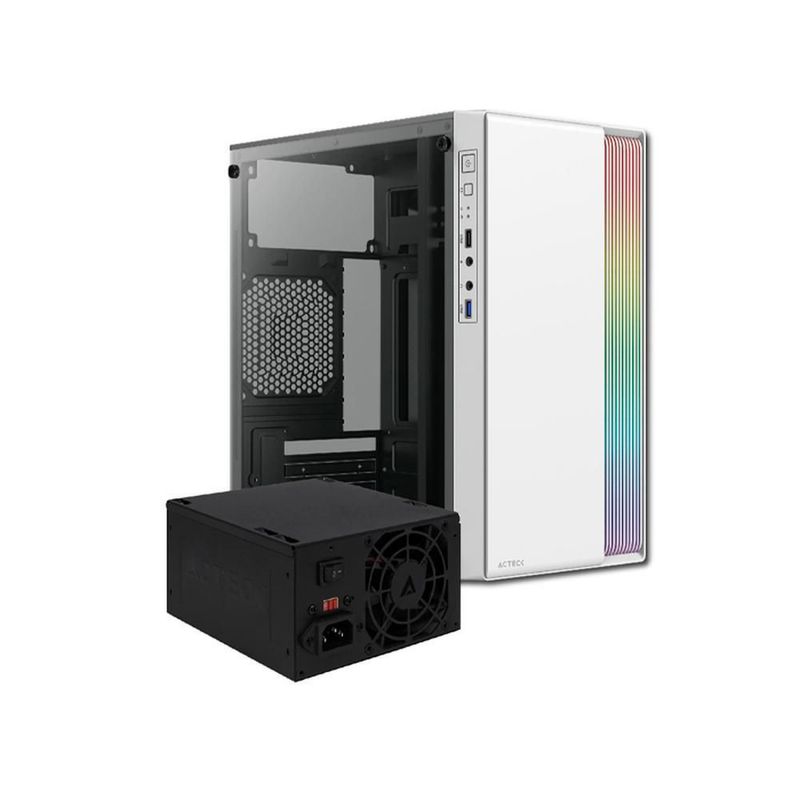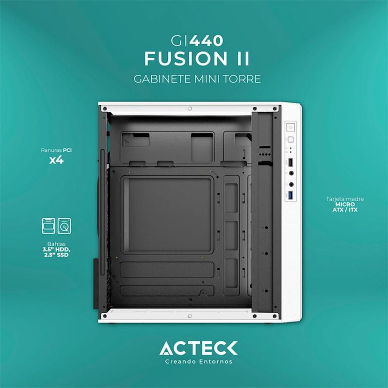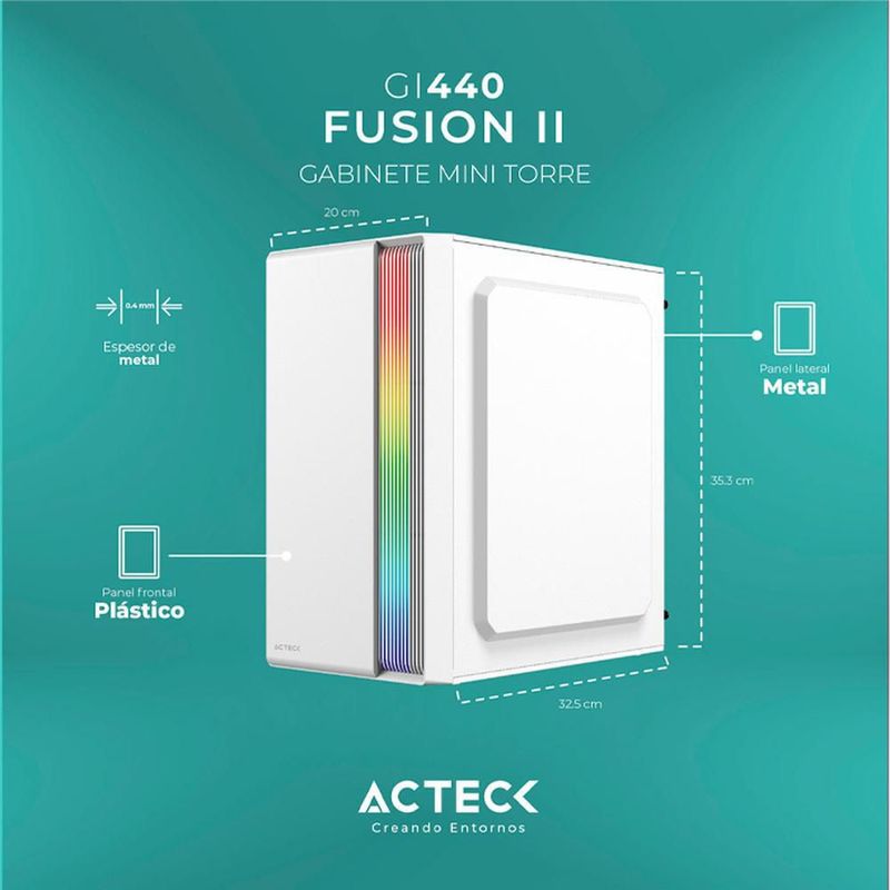 Gabinete acteck fusion ii gi440 micro atx mini torre fuente 500w acrilico blanco