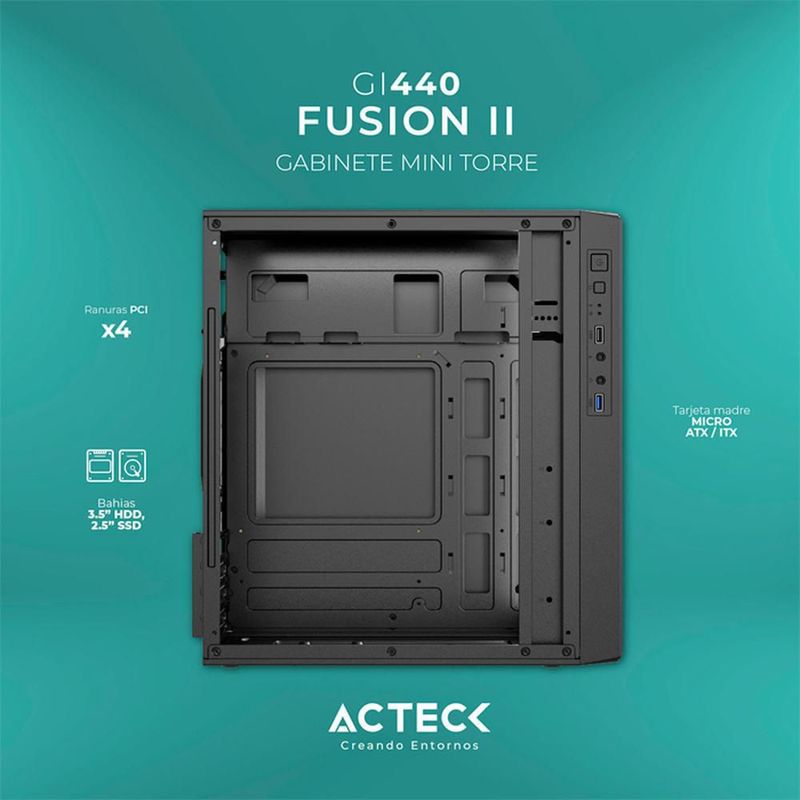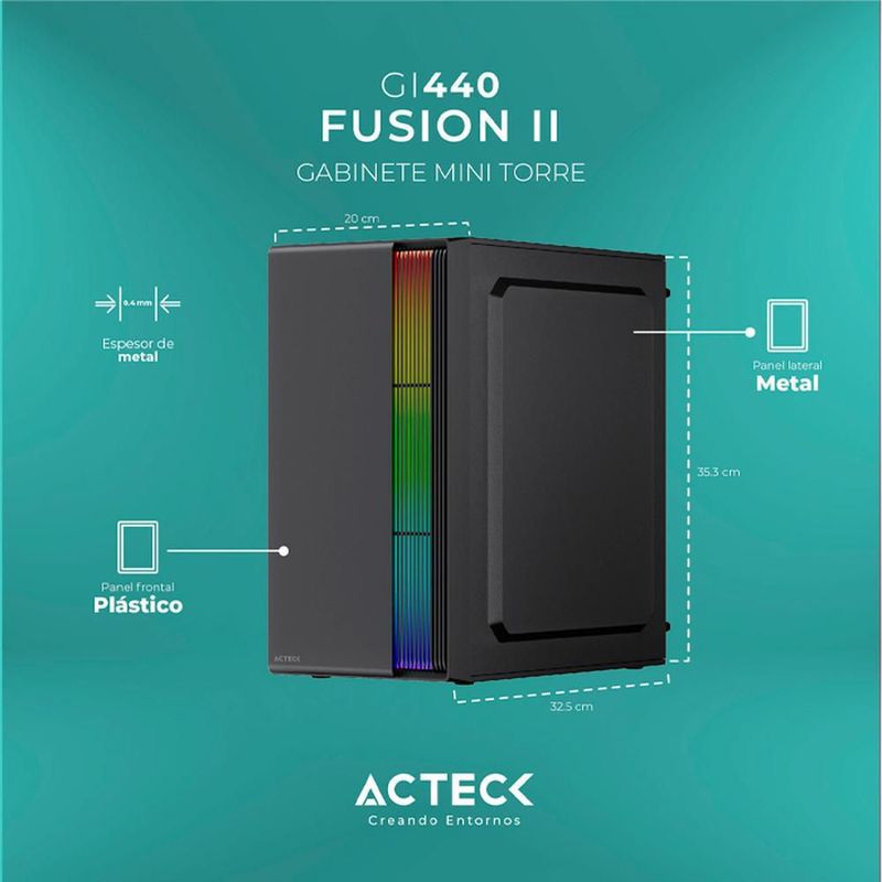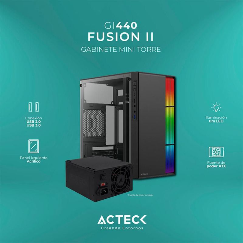 CómputoAccesorios y periféricosComponentesGabinete acteck fusion ii gi440 micro atx mini torre fuente 500w acrilico negro