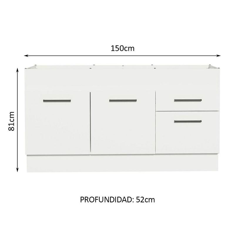 Gabinete Bajo Cocina Madesa Agata 150cm Blanco 01