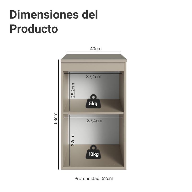 Gabinete Bajo Cocina Madesa Nice 40cm Con Encimera Crema