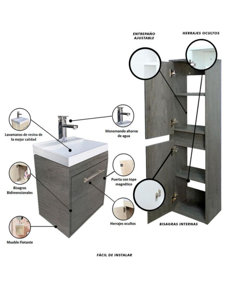 MueblesMuebles de BañoGabinetesGabinete Con Lavamanos y Monomando + Gabinete Francesco
